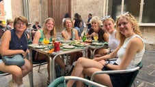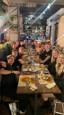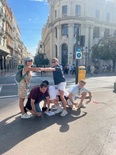 Ik heb de afgelopen nacht echt heerlijk geslapen! Na het ontbijt reden we met een bus naar de stad, waar we om 11:00 uur een fotorally hadden. Hierbij moesten we in groepjes allerlei puzzels en raadsels oplossen en we moesten foto's maken van de antwoorden. Ik zat in een groepje met Ineke, Jonas, Pieter en Stef. De middag hadden we voor onszelf en iedereen ging zich verspreiden over de stad. Raafi en ik gingen shoppen in het centrum en achteraf was het best wel leuk om te horen wat iedereen deed. Sommigen gingen shoppen, anderen gingen naar een museum, er werd uitgebreid geluncht, op het terras gezeten, er werd wat sightseeing gedaan door de stad en er werd gezwommen. Er werd vast nog wel meer gedaan, maar dit is wat ik gehoord heb. Raafi en ik gingen halverwege de middag terug naar het hotel om uit te rusten en onszelf op te frissen. Terwijl ik onder de douche stond kregen we ineens een NLAlert vanwege het feit dat het maandag (29 september) code rood zou zijn. Raafi kreeg een hele hartaanval, terwijl ik rustig stond te douchen. Overigens was het ook grappig om te horen waar iedereen was tijdens die NLAlert, want zoals gezegd waren we dus verspreid over de stad. Ik hoorde dat Esther in een kerk/kathedraal was, Bert in een museum en Annebel in een pashokje. Niet heel ideaal natuurlijk haha. Maar goed, om 17:00 uur verzamelden we weer bij de ingang van het hotel en we werden met 4 taxibusjes naar het centrum gebracht. Hier gingen we een drankje doen op het terras en iedereen bestelde een Agua de Valencia. Vervolgens liepen we naar een ander restaurant om daar uiteten te gaan. Na het avondeten liepen we naar een cocktailbar. Hier werden al snode plannen gesmeed om weer uit te gaan, maar helaas was bijna alles gesloten vanwege het naderende noodweer. Dat heeft natuurlijk ook te maken met de ramp die zich vorig jaar in Valencia afspeelde, waarbij er 228 mensen omkwamen vanwege overstromingen. Uiteindelijk ging er een groep naar een karaokebar en een groep ging naar de hotelbar, waar Raafi en ik ook bij zaten. Daar hebben we er nog een hele gezellige avond van gemaakt!