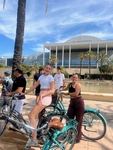 Vandaag was de grote dag en ik heb de hele nacht niet geslapen, omdat ik té excited was! Mijn wekker ging om 02:30 uur en ik ging om 03:30 uur de deur uit. Om 04:00 uur moesten we verzamelen bij het kantoor van www.schoolfruit.nl en vervolgens reden we met een deel van de groep met een taxibusje naar Schiphol. Bij de douane moesten we even wachten totdat iedereen er was, want het andere deel van de groep kwam met eigen vervoer. Onze vlucht vertrok om 07:25 uur en zo zaten we met 27 man sterk in het vliegtuig, opweg naar Valencia! We landden rond 09:45/10:00 uur in Spanje en reden vervolgens met een bus naar Hotel Primus. Eenmaal bij het hotel aangekomen ging iedereen zich even snel omkleden, want we gingen van 11 graden naar 28 graden. Vervolgens gingen de koffers naar een soort opslagplaats en liepen we naar het park. In het park kregen we allemaal een lunchpakket. Het was pas 11:00 uur, maar ja, zo verliep de planning nou eenmaal. Na de lunch kregen we in 2 groepen een fietstour door de stad. Halverwege de fietstour gingen we even uitrusten op een terrasje bij Mestalla; het stadion van Valencia CF! Na een aantal uur te hebben gefietst, konden we in de namiddag inchecken bij het hotel. Raafi was mijn kamergenoot, maar dat wist ik al. Wij sliepen samen met Jill & Annebel en Ineke om de 7e verdieping (van de 8). Na het inchecken hadden we even een paar uur voor onszelf en de meeste mensen gingen even op bed liggen en zichzelf opfrissen. Raafi en ik ook. 's Avonds gingen we uiteten bij een tapasrestaurant en veel mensen gingen na het eten door naar een strandfeest. Ik ging met Ineke en Esther naar de rooftopbar. Dat is een bar die op de 10e verdieping zit van een ander hotel en dan heb je een prachtig uitzicht over de stad. De overige mensen zochten een kroegje op of gingen gewoon naar bed. Uiteindelijk waren wij rond 23:00 uur weer terug in het hotel en toen gingen wij ook naar bed.