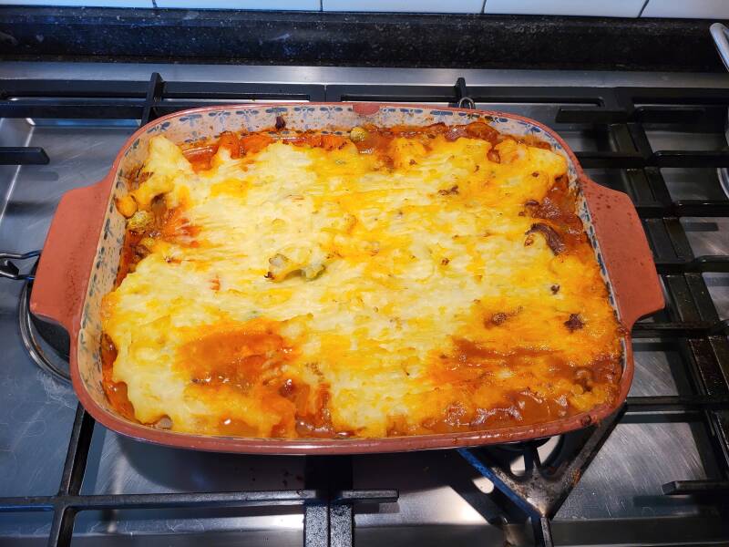 10. Haal de Shepherd's pie uit de oven en laat nog even een paar minuten rusten voordat je haar serveert.