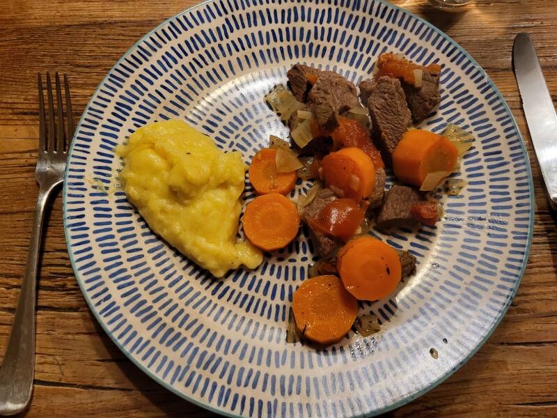 - 500 gram rundvlees, in blokjes gesneden (ik had runderlappen)