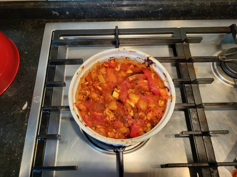Ratatouille is een heerlijk Provençaals gerecht dat bestaat uit gestoofde groenten, zoals aubergine, courgette, paprika, en tomaten, op smaak gebracht met knoflook, ui en kruiden zoals tijm en basilicum. Het wordt vaak geserveerd als bijgerecht of als hoofdgerecht, zowel warm als koud. De smaken van de groenten komen samen, waardoor het een favoriet is voor liefhebbers van de mediterraanse keuken. Laat je trouwens niet misleiden door de foto; deze week maakte ik een gerecht voor 1 persoon, maar hieronder volgt een gerecht voor 4 personen.
